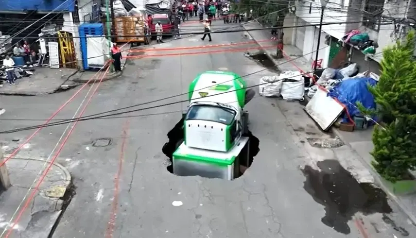شهدت منطقة إزتابالابا، أحد أكثر أحياء مكسيكو سيتي كثافة سكانية، حادثة سقوط شاحنة محملة بزجاجات صودا في حفرة أرضية كبيرة، دون وقوع أي إصابات بين السائقين أو المارة، وفق ما نقلته وسائل الإعلام المحلية.