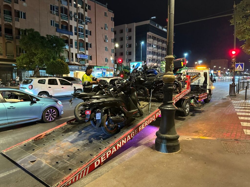 شنت عناصر فرقة السير والجولان بالمنطقة الأمنية الأولى جليز بمراكش، مساء اليوم الثلاثاء، حملة ضد سائقي الدراجات النارية المعدلة والمخالفة للقانون.