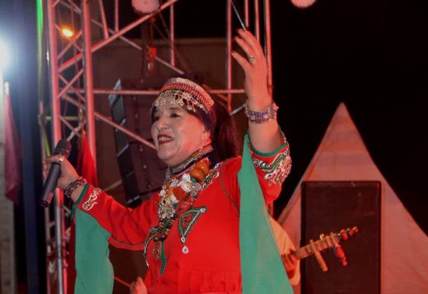 تألقت أيقونة الفن الأمازيغي فاطمة شاهو تبعمرانت بإطلالة تقليدية رائعة، مرتدية زياً أمازيغياً أحمر يزدان بالحلي الفضية والمرجان، في لوحة بصرية تختزل عبق التراث المغربي الأصيل. وقد أتحفت الجمهور بمجموعة من أشهر أغانيها الخالدة التي تفاعل معها الحاضرون بحماس كبير وأصوات ترددها بروح وطنية عالية.