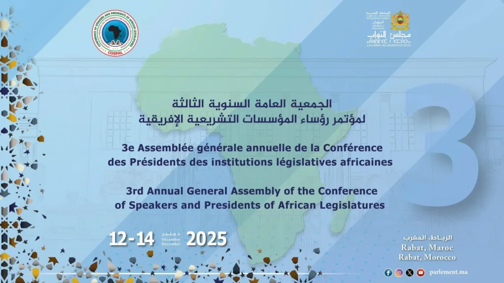 انطلقت اليوم الجمعة بالرباط، أشغال الدورة الثالثة للجمعية العامة لمؤتمر رؤساء المؤسسات التشريعية الإفريقية (CoSPAL)، تحت شعار “الريادة التشريعية والدبلوماسية البرلمانية في نظام عالمي متغير”.