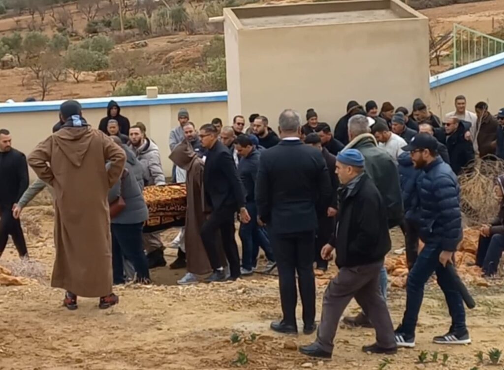 ووري جثمان الفقيد الثرى بمقبرة “قنين” بعد صلاة الظهر، حيث تقدم المشيعين شقيقه حكيم زياش، الذي ظهر عليه التأثر الشديد، إلى جانب عائلة الفقيد وأقاربه.