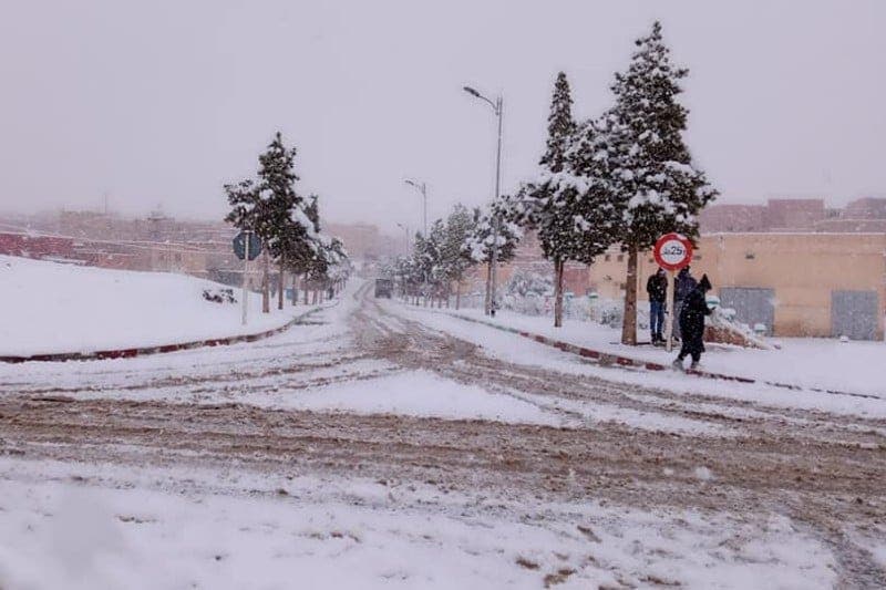 شهدت مدينة وجدة تساقطًا للثلوج في مشهد نادر، أعاد إلى الأذهان صورًا قلما شوهدت في المدينة الواقعة شرق المغرب.