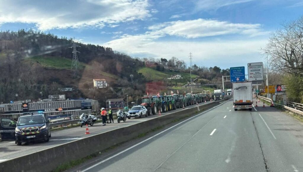تتواصل الاحتجاجات التي ينفذها الفلاحون الإسبان، لليوم الخميس، عند معبر إيرون الحدودي بين إسبانيا وفرنسا، مما يتسبب في شل حركة المرور على الطريق السريع AP-8.