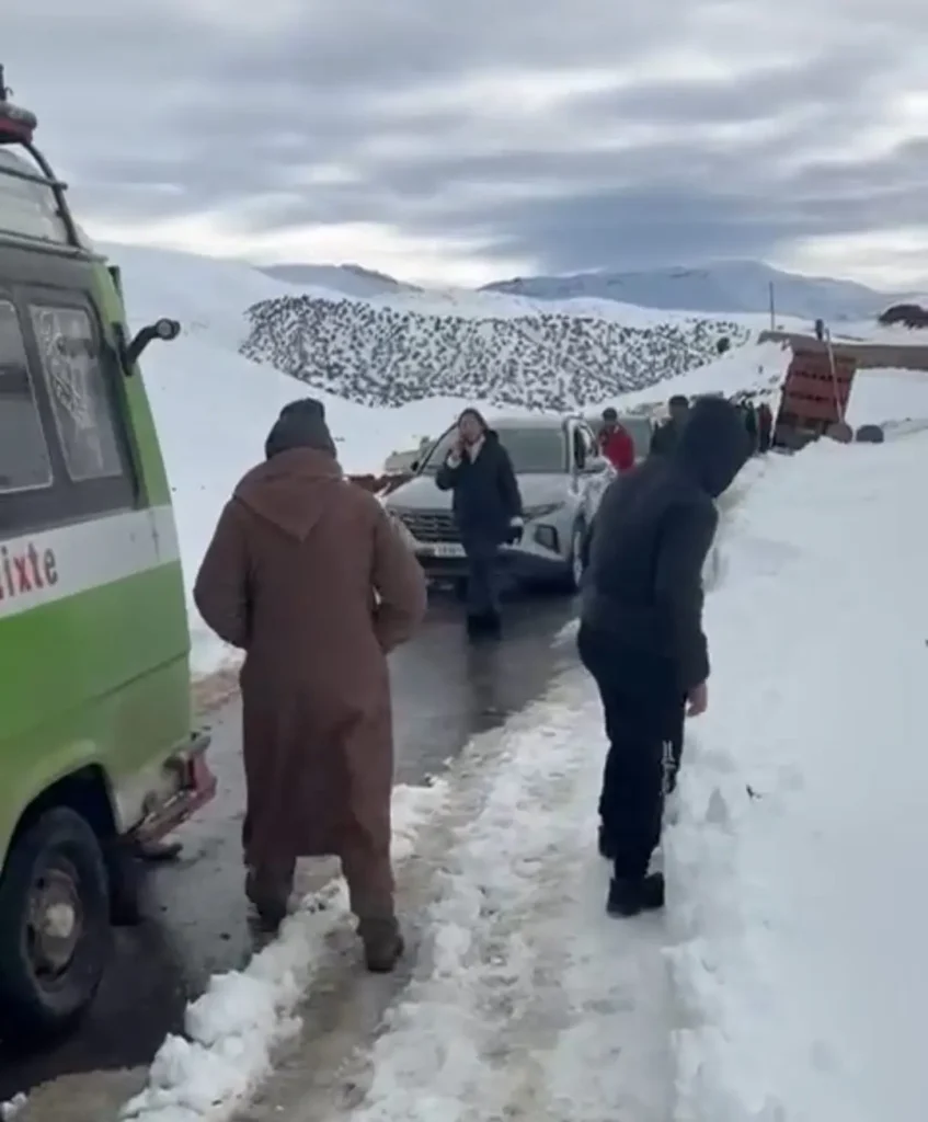 يواجه العشرات من الأشخاص في منطقة آيت بوكماز أوضاعًا طارئة بسبب تراكم الثلوج الكثيفة، ما تسبب في حجز السيارات والأفراد لساعات طويلة وتعطيل حركة المرور.