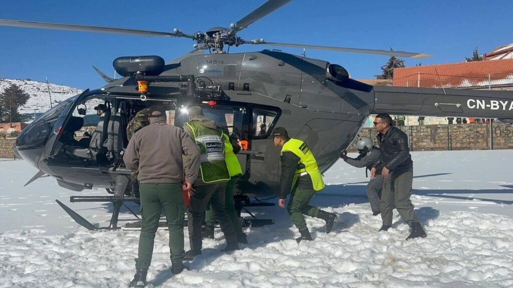 إنقاذ 5 مرضى في أزيلال بمروحية الدرك الملكي وسط الثلوج الكثيفة
