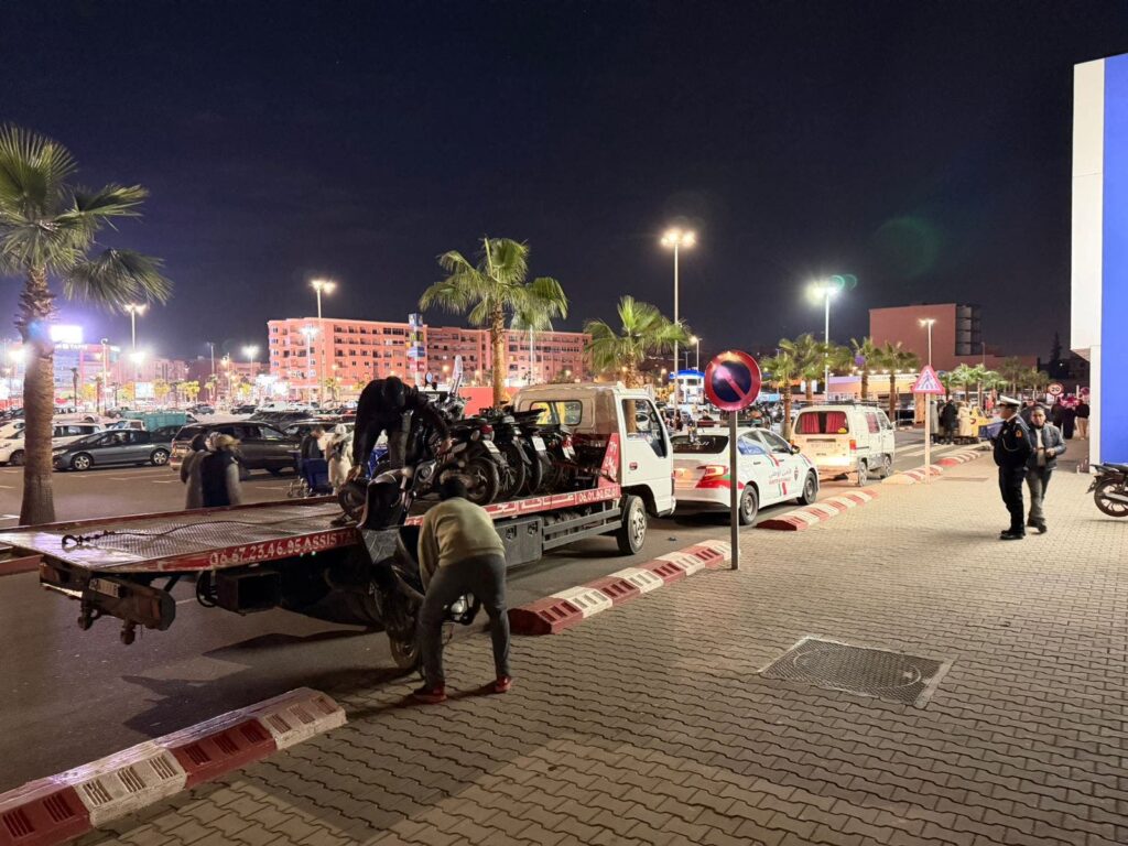 شنت عناصر الفرقة الحضرية للأمن العمومي بمنطقة جليز بمراكش حملة أمنية واسعة استهدفت الدراجات النارية المخالفة التي تحتل الأرصفة في الشارع العام.