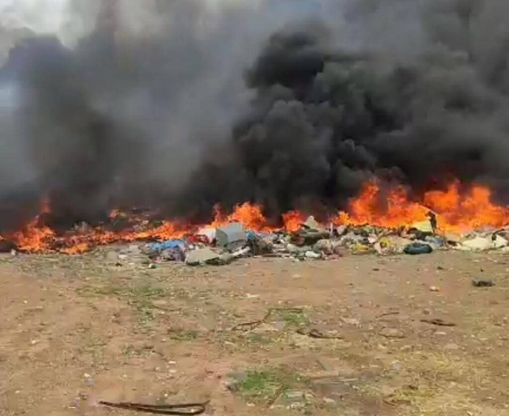 واندلع الحريق في المنطقة المخصصة لتجميع النفايات، مما أدى إلى تصاعد أعمدة الدخان الكثيفة، وتسبب في حالة استنفار لدى السلطات المحلية.