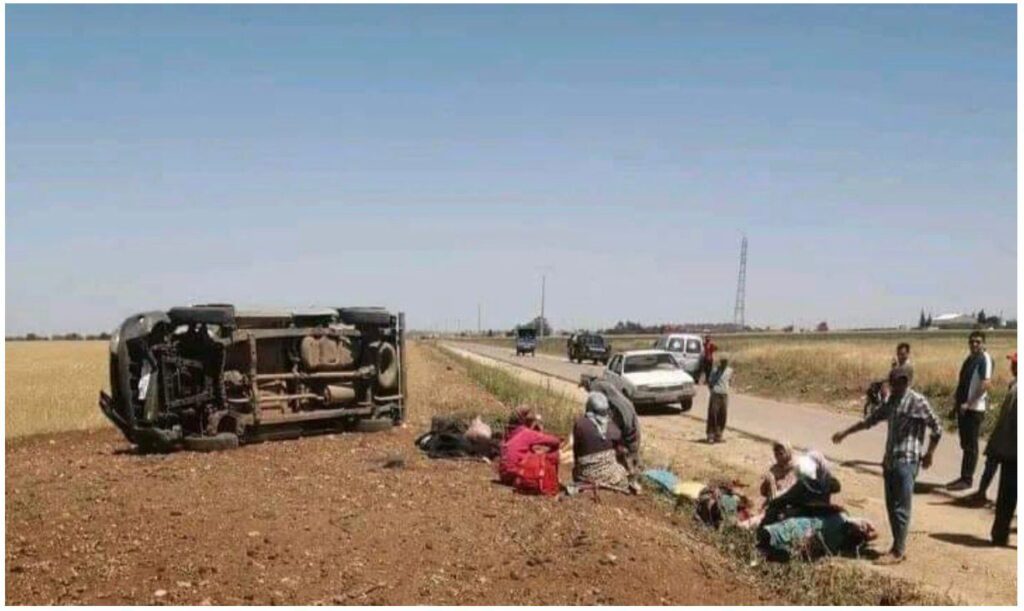 ووفقًا لمصادر مطلعة، وقع الحادث عندما انقلبت سيارة من نوع “بيكوب” كانت تقل ثماني عاملات فلاحيات عائدات من حقول لـ”الجلبانة” بعد انتهاء عملهن.