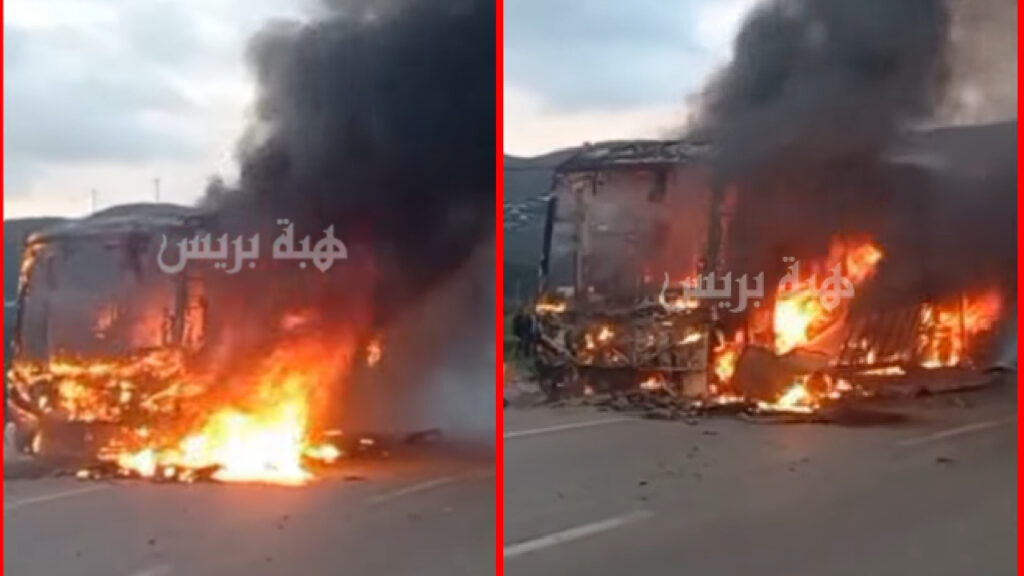 اندلع حريق مهول في حافلة لنقل المسافرين، مساء الأربعاء، على الطريق الرابطة بين مدينتي تطوان وطنجة، وبالتحديد بمنطقة عين لحصن.