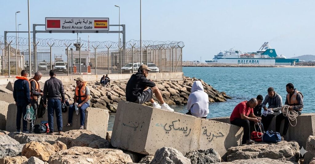 لا تقتصر الأغنية على الإيقاعات الموسيقية، بل تصور واقع القاصرين المغاربة الذين يمارسون “الريسكي”، وهي محاولات خطيرة للتسلل إلى السفن أو القفز عليها أملاً في الوصول إلى إسبانيا.