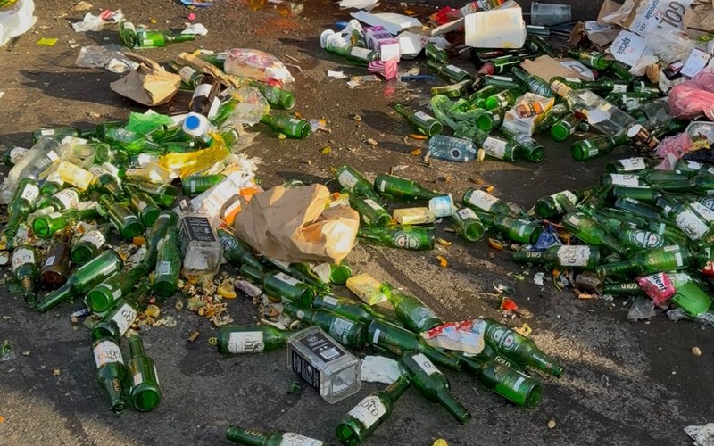 توثق صور ومقاطع فيديو متداولة حالة الشوارع الرئيسية، مثل شارع الزرقطوني، حيث تتراكم مئات القنينات بشكل فوضوي.