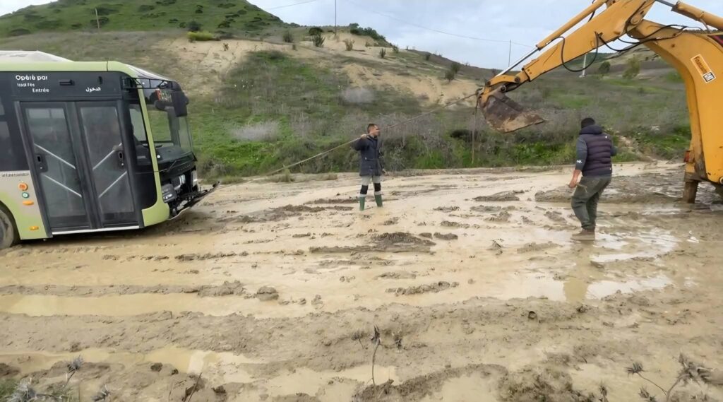 حافلة نقل حضري تعلق في أوحال طريق فاس-مولاي يعقوب